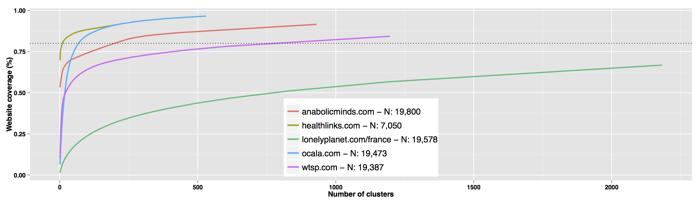 |**Category** | **URL** | ** Pages** | ** Unclassified** | ** Clusters** | **Accounting for 80%**|